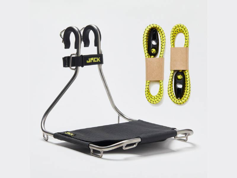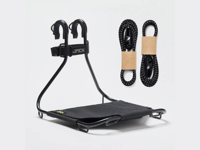 From time to time, a product appears on the market that makes you think, "What a fantastic idea, why didn't anyone think of it before? ...It's so simple." JACK the Bike Rack, is just such a case. Designed by the adventurous bike enthusiasts at WholeGrainCycles, JACK is an all-purpose front rack that securely attaches to almost any handlebar and provides a no-fuss solution for carrying your stuff while on tour. JACK is a "jack of all trades" and attaches to your bike with a tool-free strap system. No special bike frames or forks, no special equipment and no technical knowledge required. Easy on, easy off! Gone are the days of a big, sweaty spot on your back due to a heavy backpack.