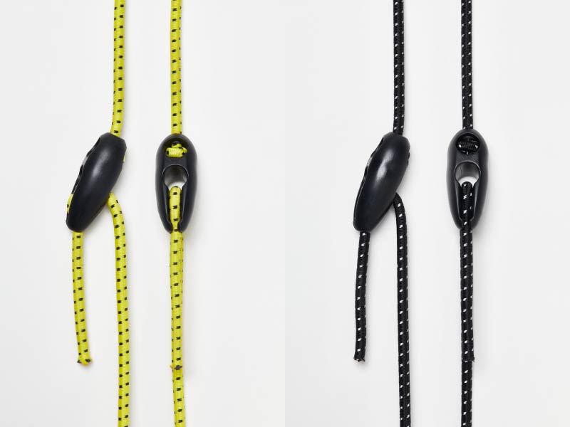 Extremely flexible, tear-resistant rubber bungee straps with woven recycled polyester cover